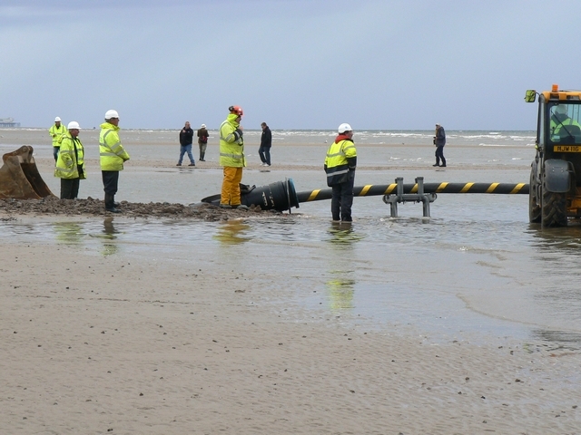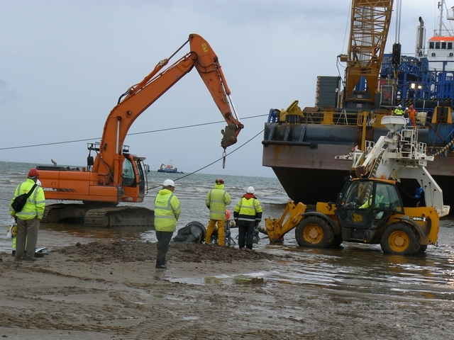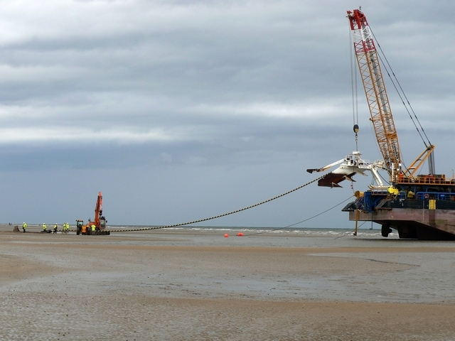 - The ship leaves to lay the cable to the windfarm