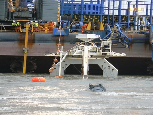 - The plough that burrows the trench for the cable