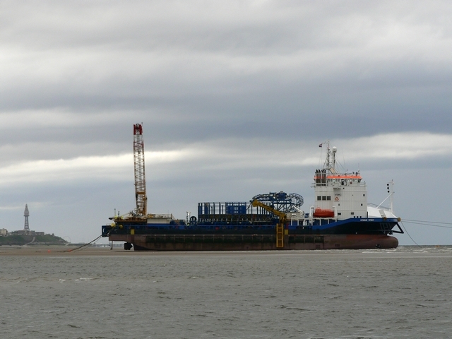 - The vessel comes aground, Blackpool Tower in the distance